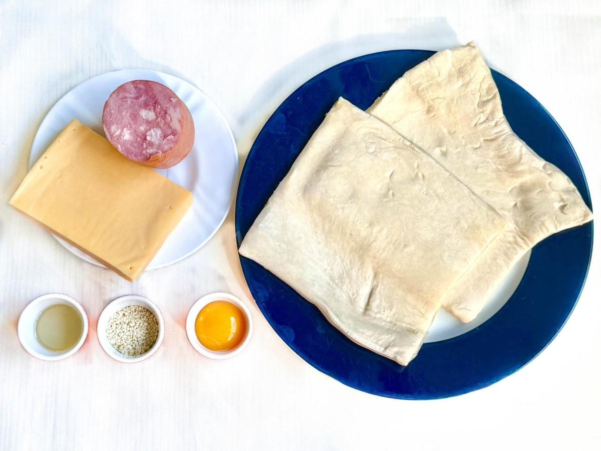 1. Подготовка ингредиентов: Заранее разморозить слоеное тесто. По возможности, накрывать пленкой, чтобы избежать заветривания. Тесто можно приготовить самостоятельно — рецепты расположены ниже.