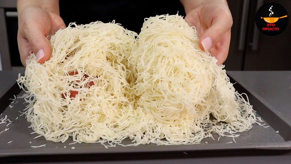 Одним из основных компонентов начинки является тесто катаифи. Оно доступно в продаже, но также может быть легко приготовлено в домашних условиях. После нарезки 50 г теста, его обжаривают на сковороде вместе с небольшим количеством сливочного масла до золотистого цвета. Процесс жарки не займет много времени и добавит характерный аромат.