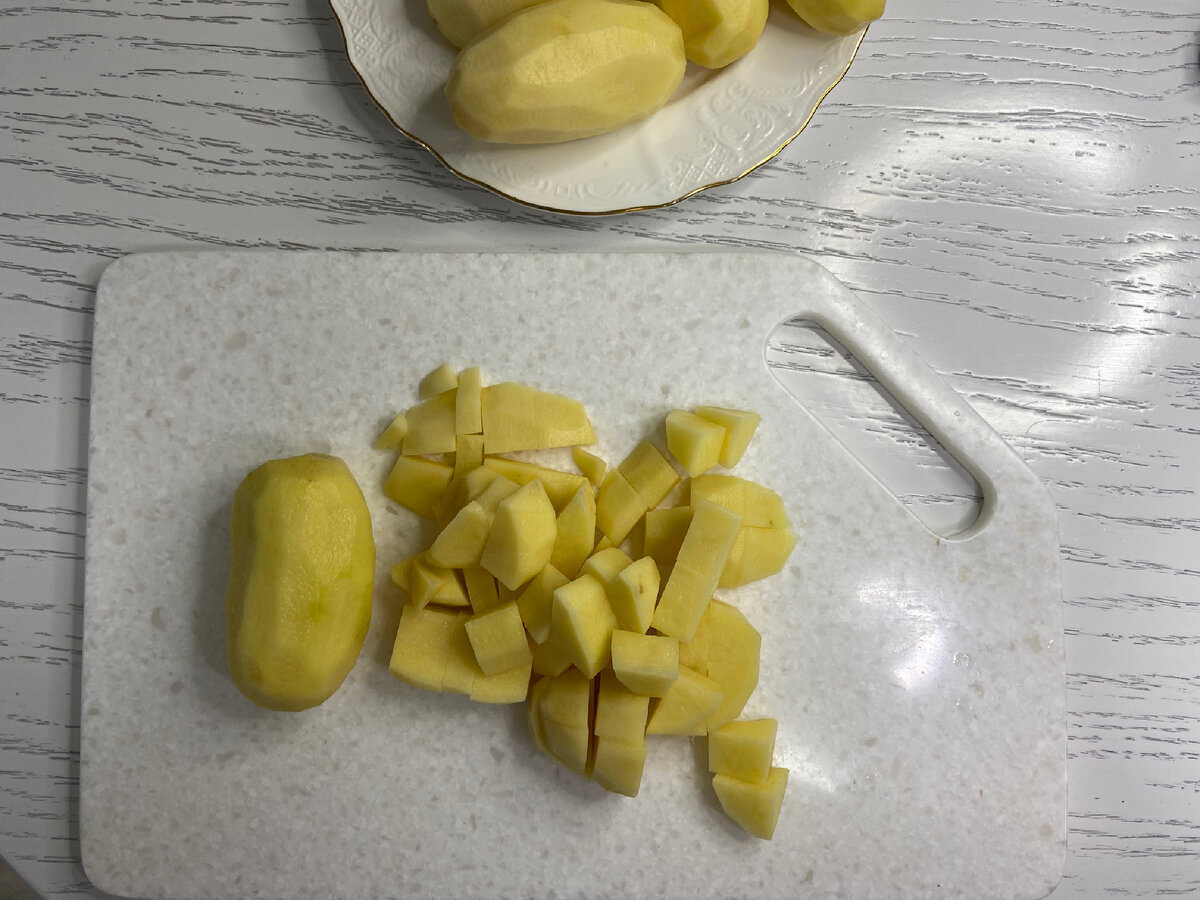 Для начала нужно очистить картофель от кожуры, тщательно промыть и нарезать его — можно на небольшие кубики или кружочки, как больше нравится. Важный момент: старайтесь выбирать рассыпчатые сорта картофеля, которые подарят блюду лучший вкус. Оптимальным вариантом станет картошка с вашего огорода.