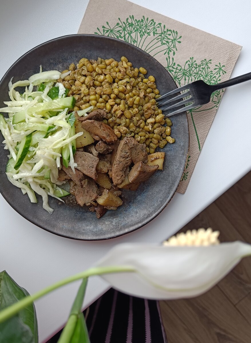 Готовое блюдо, всего из трёх ингредиентов, удивит гармоничным сочетанием сладости яблока с насыщенным вкусом печени, дополняя блюдо пикантностью.