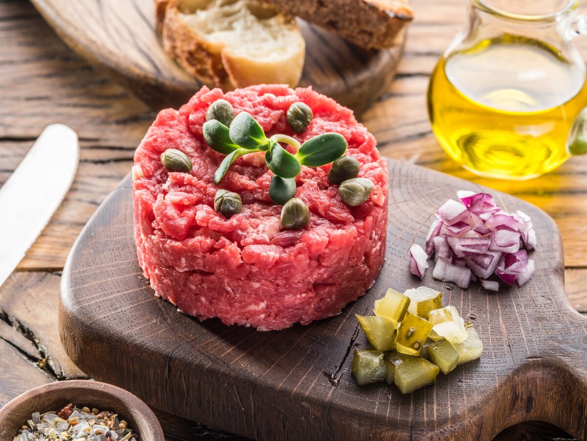 Рецепт тартара из говядины с сыром рокфор и трюфельным маслом: