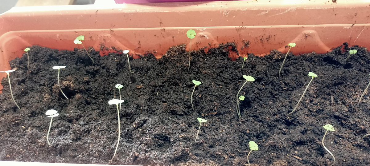 После того как рассада поднялась, было решено выделить место для каждого растения. Однако в какой-то момент терпение лопнуло — несколько пучков чиа были посажены без разделения на отдельные растения. Несмотря на это, оставшиеся саженцы не пропали зря: они нашли своих «поклонников» среди местных кур, которые, к слову, стали рады неожиданному угощению.