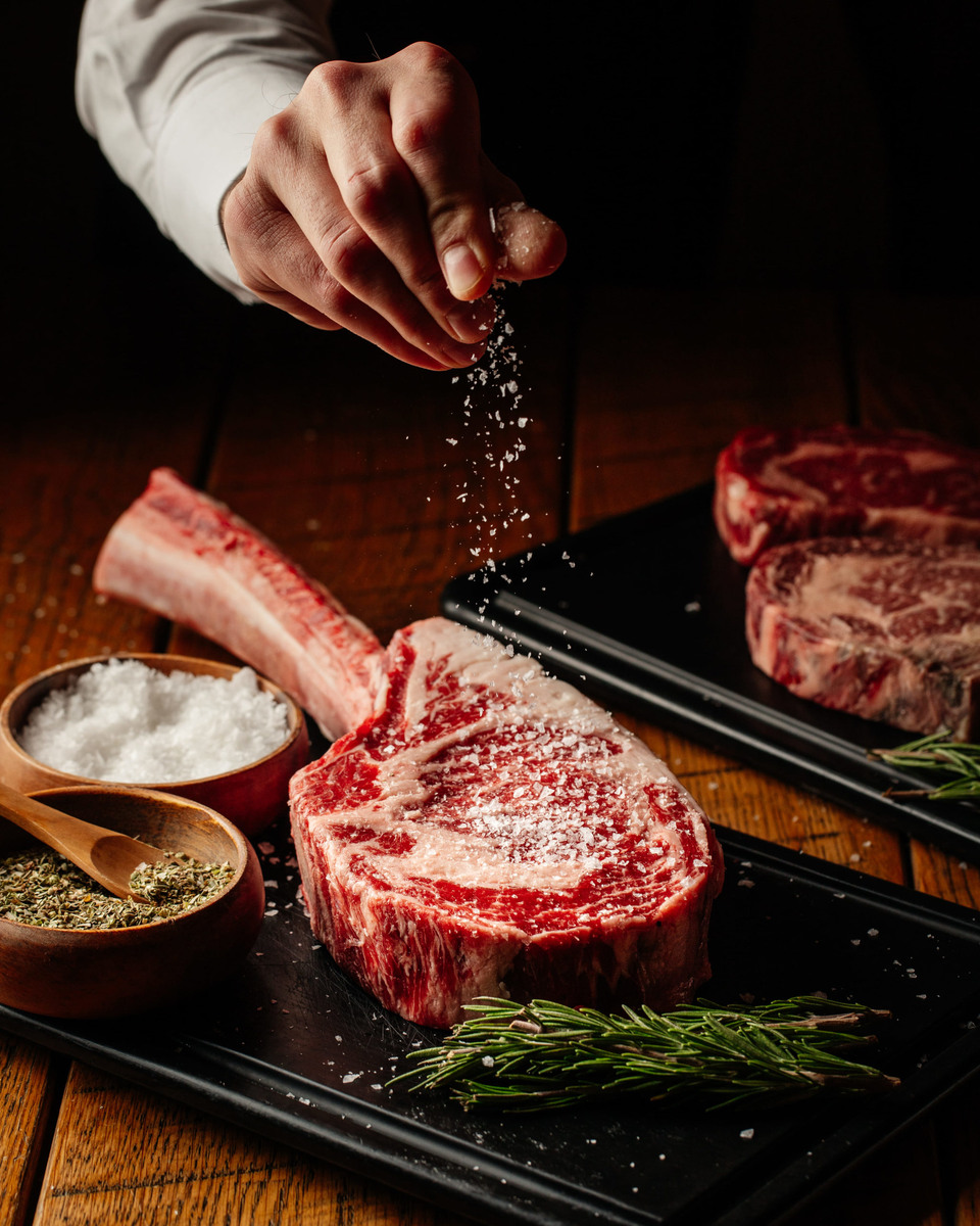При выборе мяса важно помнить: в ресторанах используют говядину зернового откорма, у которой жир равномерно распределен, что позволяет ему плавиться и наполнять мясо ароматом во время готовки.