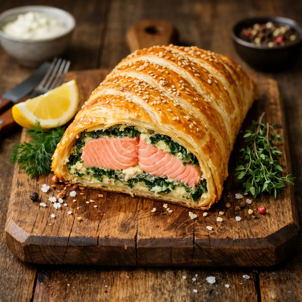 Слоеный пирог с рыбой – это не просто угощение, это настоящая гастрономическая феерия. Такой пирог станет звездой любого ужина с друзьями или семейного обеда в выходной. Комбинация нежной рыбы, насыщенной, ароматной начинки и хрустящего слоеного теста превращает каждое блюдо в праздник вкуса.