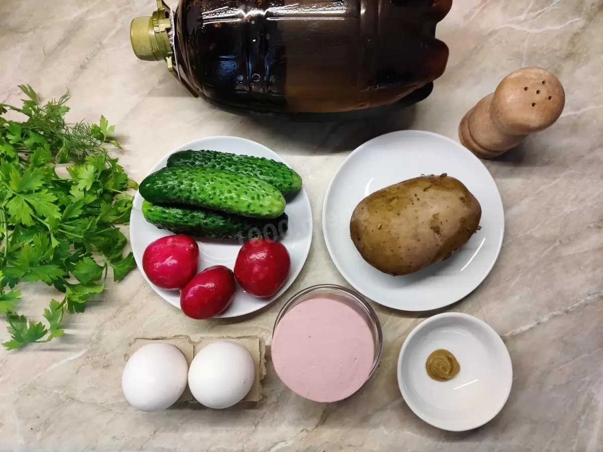 Приготовление окрошки на пиве требует всего 20 минут и несложных действий. Вот подробная инструкция: