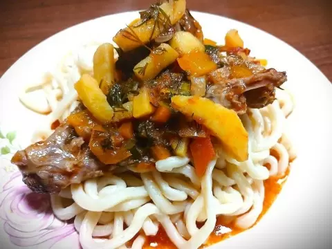 Этот необычный лагман станет настоящим хитом на столе и подарит незабываемый вкусовой опыт. Блюдо обязательно порадует вас и ваших близких!