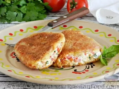 примечание: традиционная болгарская закуска "чушка бюрек" — это перец, фаршированный брынзой и помидорами, обжаренный в хрустящей панировке. Перцы запекаются в духовке и затем наполняются ароматной начинкой. Такой подход великолепно сочетает текстуры и вкусы.