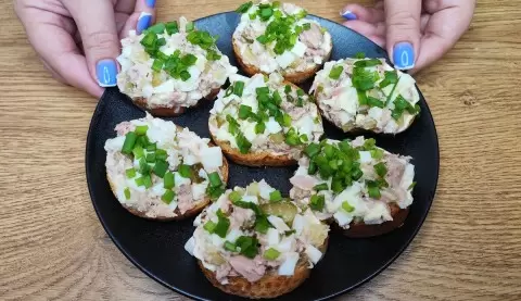 И вот, легкая и невероятно вкусная закуска готова! Эти бутерброды станут отличным дополнением к любому столу.