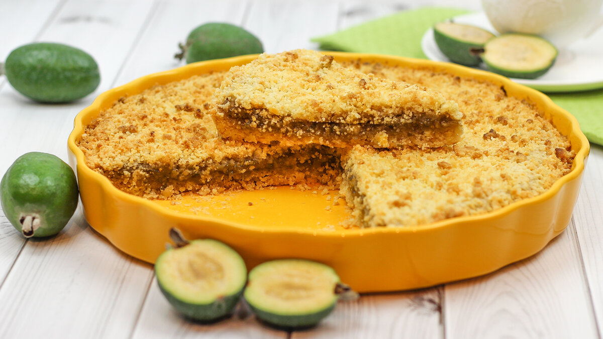 Порадуйте своих близких легким и воздушным насыпным пирогом, который тает во рту. Он настолько нежный, что станет изюминкой любого чаепития! Используйте любое варенье, но именно с фейхоа получается особенно аппетитно. Это экзотическое растение дарит уникальный вкус, который сочетает в себе ноты земляники и ананаса.