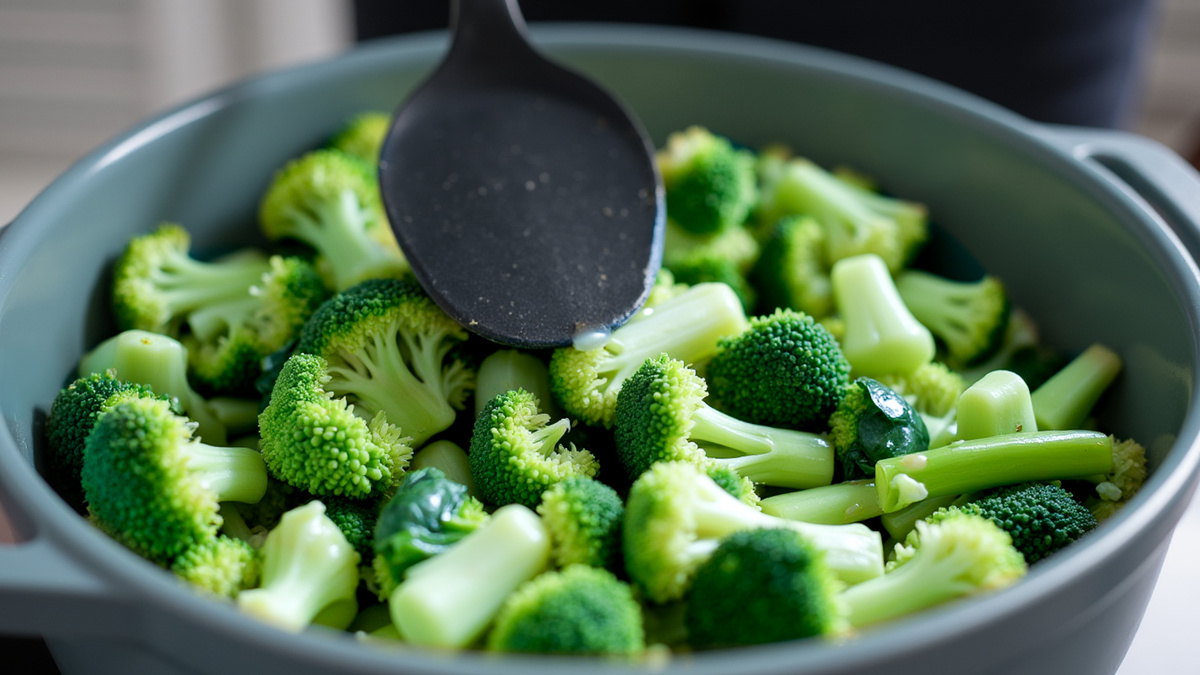 Для этого рецепта потребуется 400 граммов свежей брокколи. Её следует тщательно промыть, а затем нарезать как соцветия, так и стебли. На сковороде разогревается 2 столовые ложки оливкового масла. В него помещаются нарезанные брокколи и обжариваются в течение 1-2 минут, чтобы раскрыть аромат.