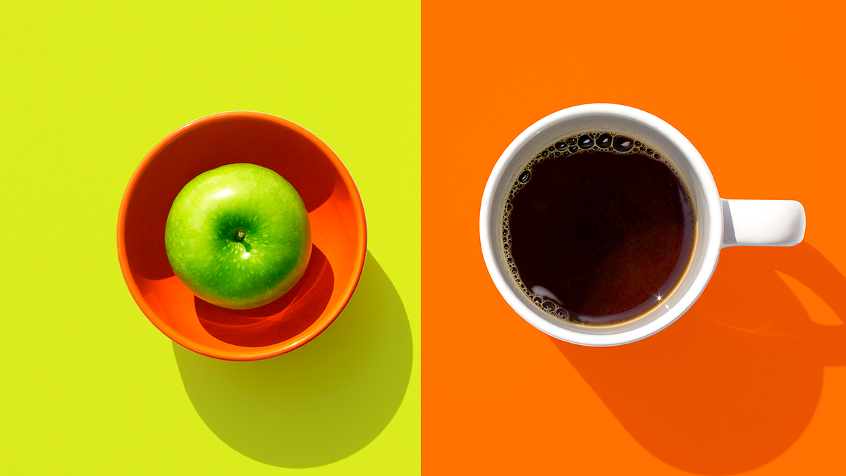Кофе бодрит мгновенно — это удобно перед важной встречей, но если пить его сразу после пробуждения, эффект иногда сменяется упадком. Лучше оставить чашку на 60–90 минут после яблока.