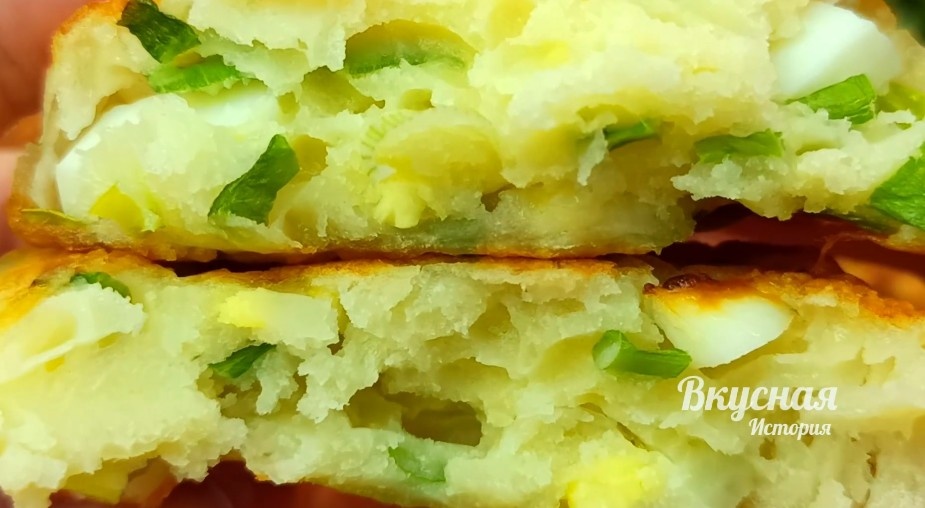 Вареные яйца нарезаются кубиками и смешиваются с нарезанным зеленым луком, прежде чем попасть в миску с тестом. Когда тесто готово, сковорода разогревается с растительным маслом на небольшом огне. Тесто высыпается в сковороду, и оладушки жарятся с обеих сторон до золотистой корочки.