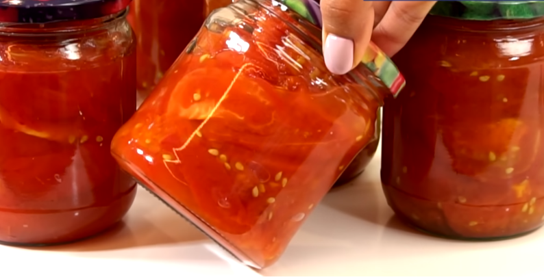 Эти заготовки прекрасно хранятся в кладовой до следующего урожая. При открытии банки можно добавить чеснок, перец и заправить растительным маслом, чтобы приготовить салат, или измельчить блендером для получения вкуснейшего томатного сока.