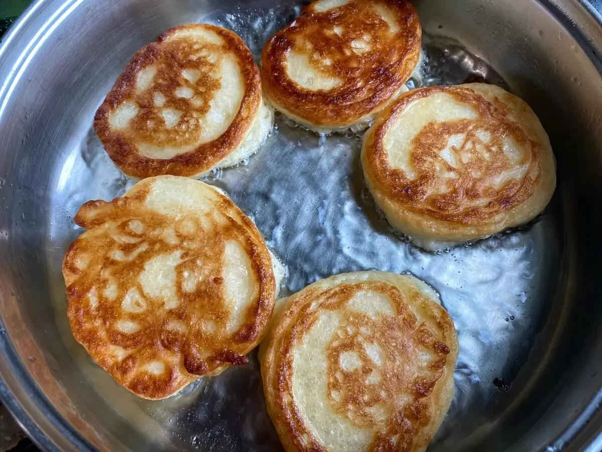 Как только тесто готово, разогрейте сковороду с небольшим количеством масла. С помощью столовой ложки выкладывайте тесто на сковороду. Для удобства окунайте ложку в воду перед каждой порцией, чтобы тесто не прилипало. Благодаря этой технике оладушки не впитают много масла и поднимутся до румяной корочки с обеих сторон.