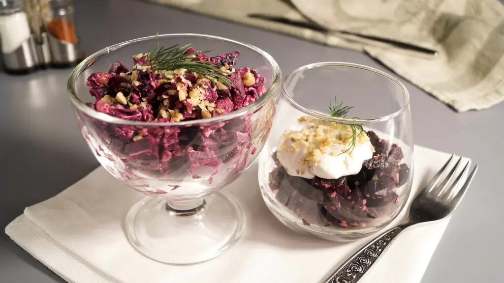 Рецепт 2: Свекольный салат с грецкими орехами и черносливом