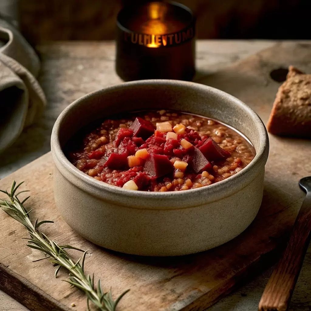 Первым в меню значится «пульмене» — сытная похлёбка, которая некогда была излюбленным блюдом римлян. В веганской версии его основой становятся чечевица и свёкла, а вместо мяса используется маринованный тофу. Это не просто еда, а настоящая отсылка к тосканским крестьянам, которые, несмотря на скромные средства, умели создавать шедевры из доступных продуктов.