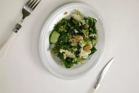 Порадуйте себя и своих близких вкусным и полезным зеленым салатом с насыщенным вкусом соуса шисо. Этот рецепт идеально подходит для легкого обеда или ужина, сочетая разнообразие текстур и свежесть ингредиентов.